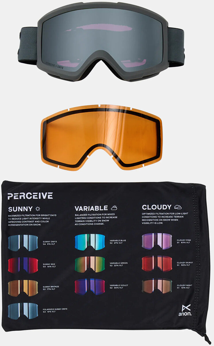 The Anon Helix 2.0 Goggles offer the terrain-defining clarity of our Perceive lens with the wide field of view and low-profile design of a cylindrical lens. Full-perimeter venting and our best anti-fog treatment maintain sharp optics through a wide range of temps and weather conditions. They include a bonus lens so you can choose the best tint for the conditions. They are over the glasses compatible and include a microfiber bag for storage and lens cleaning.