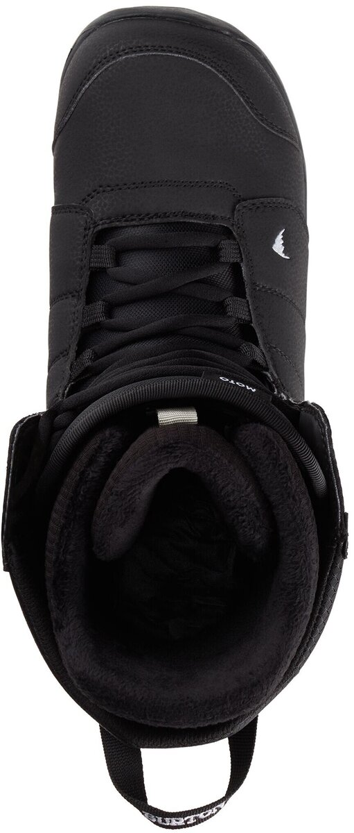 Lightweight and warm with a forgiving flex, the men's Burton Moto Lace Snowboard Boot set you up to ride longer. Lace them up for a broken-in feel that fits great from your first day on the snow. Add a soft all-mountain flex with foot-warming tech that reflects body heat for extra warm feet, and you have a boot that lets you focus on your progression across the mountain.